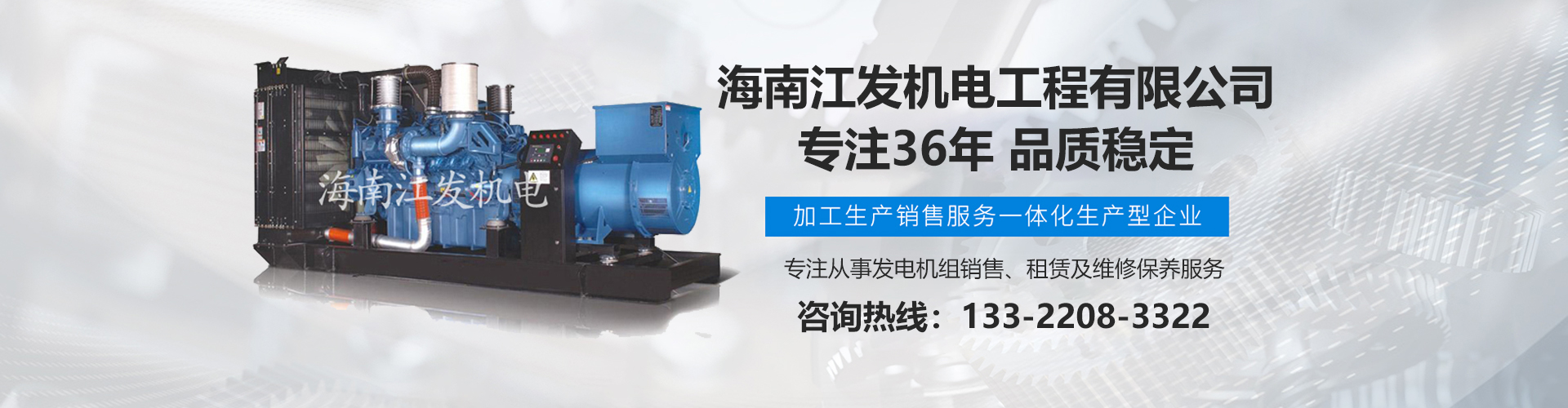 海南江發(fā)機(jī)電工程有限公司是海南經(jīng)營進(jìn)口、國產(chǎn)柴油發(fā)電機(jī)組、是海南較早、較大的銷售、租賃服務(wù)及維修保養(yǎng)專業(yè)機(jī)電公司。從1985年開始,公司勵精圖治、銳意進(jìn)取、不斷創(chuàng)新,不僅在海南機(jī)電行業(yè)領(lǐng)域中具有先進(jìn)技術(shù)、完美管理、誠信服務(wù),高超的產(chǎn)品質(zhì)量和性能,而且還有合理的產(chǎn)品性能價格比,令客戶滿意以及完善的支持保障。 在客戶心目中,江發(fā)公司不僅具有最好的企業(yè)信譽(yù),還是客戶最信賴的誠信單位,而且會帶給客戶永遠(yuǎn)的光明和豐厚回報。